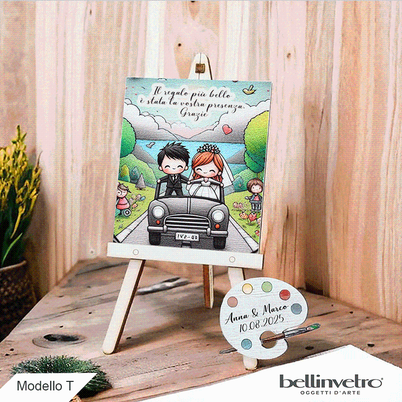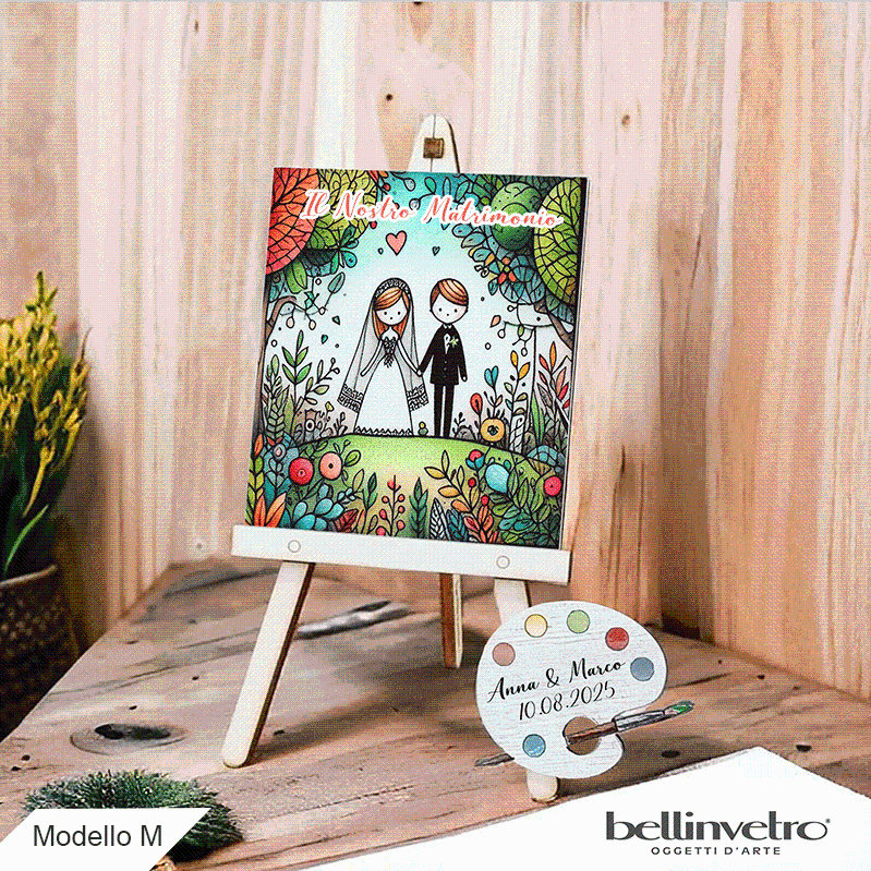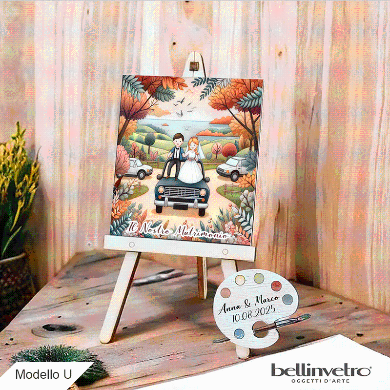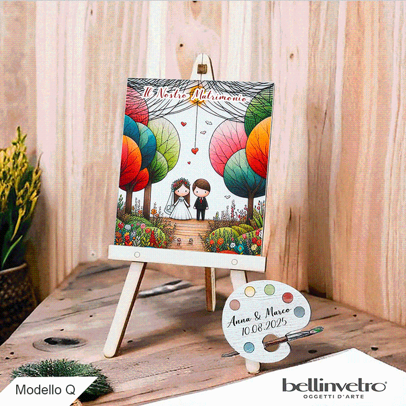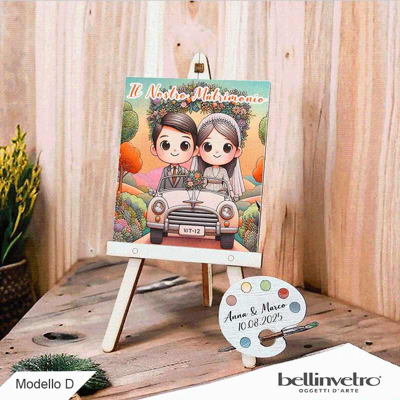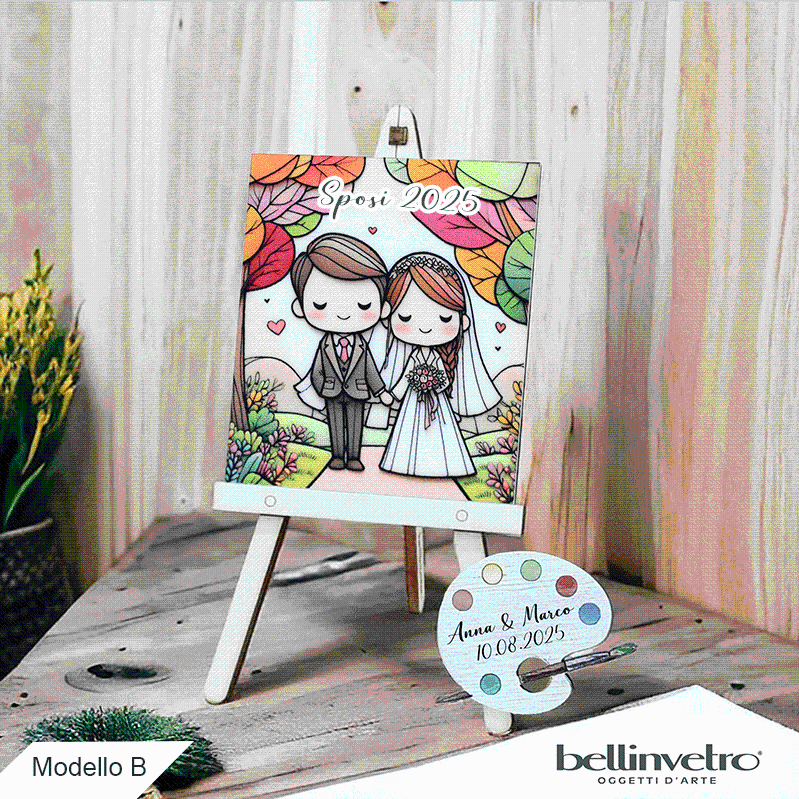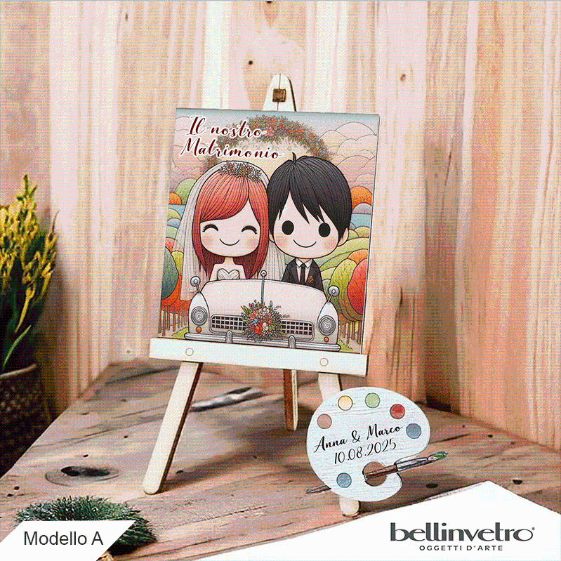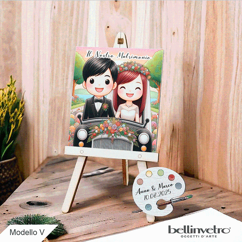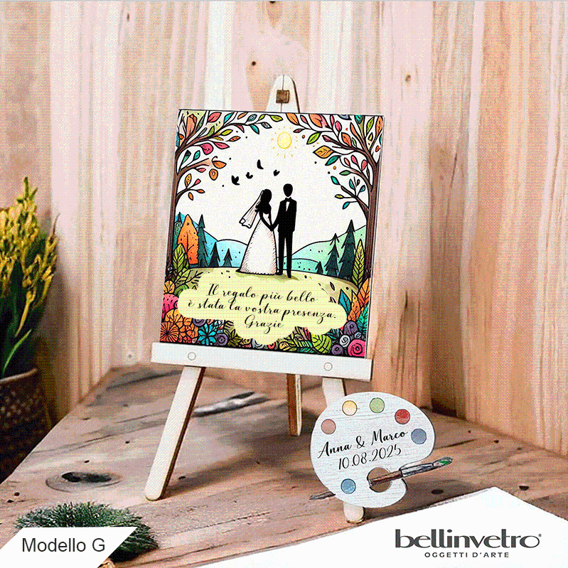 Cavalletti con quadretti - tele con tavolozze per nozze coppia sposi BELLINVETRO VR-UV 1208